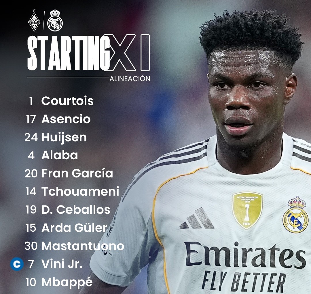 Real Madrid: Thibaut Courtois, Raul Asencio, Dean Huijsen, David Alaba, Fran García, Aurelien Tchouameni (Camavinga 80′), Dani Ceballos, Franco Mastantuono (Brahim Díaz 70′), Arda Guler (Bellingham 80′), Vinicius Junior (Rodrygo 70′), Kylian Mbappe (Gonzalo García 81′).