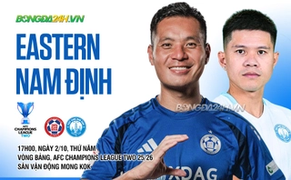Tại lượt trận thứ hai vòng bảng AFC Champions League Two 2025/2026, CLB Nam Định sẽ tới làm khách trước đại diện của bóng đá Hong Kong, Eastern FC. Đây sẽ là cơ hội tốt để đội bóng thành Nam tích lũy thêm 3 điểm, để qua đó từng bước chinh phục tấm vé vượt qua vòng bảng.