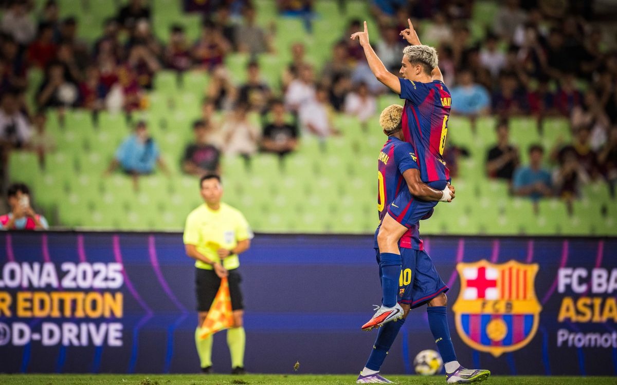 Khoảng thời gian còn lại của hiệp 1, bóng hầu như lăn bên phần sân đội chủ nhà và khung thành Daegu liên tục bị đe dọa. Phút 37, Lamine Yamal thực hiện các động tác xử lý bóng “như Lionel Messi”, loại bỏ 2 cầu thủ thủ đối phương rồi tung ra cú sút chân trái căng từ ngoài khu cấm địa, buộc thủ môn Oh Seung-hoon phải trổ tài.